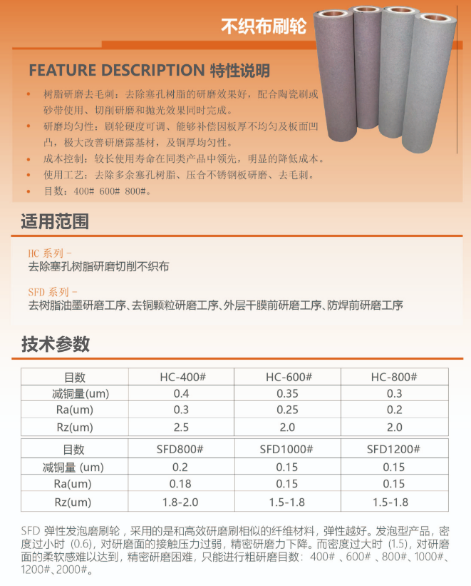 HC系列- 去(qù)除塞孔樹(shù)脂研磨切削不(☆>bù)織布。