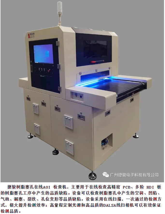 導語:捷駿最新研發的(de)樹(shù)脂塞孔在線A©↑₹♥OI 檢查機(jī),主要(yào)用( ≠$yòng)于在線檢查高(gāo)精密 PCB、多(duō)階 ✘★λHDI 闆的(de)樹(shù)脂塞孔工(gōng)序中産生(★φπshēng)的(de)品質缺陷。設備可(kě)以檢查樹(shù)脂塞♣™β↓孔中産生(shēng)的(de)空(kōng)洞、凹陷↓₩≠、氣泡、漏塞、裂紋、孔位變形等品質缺陷。